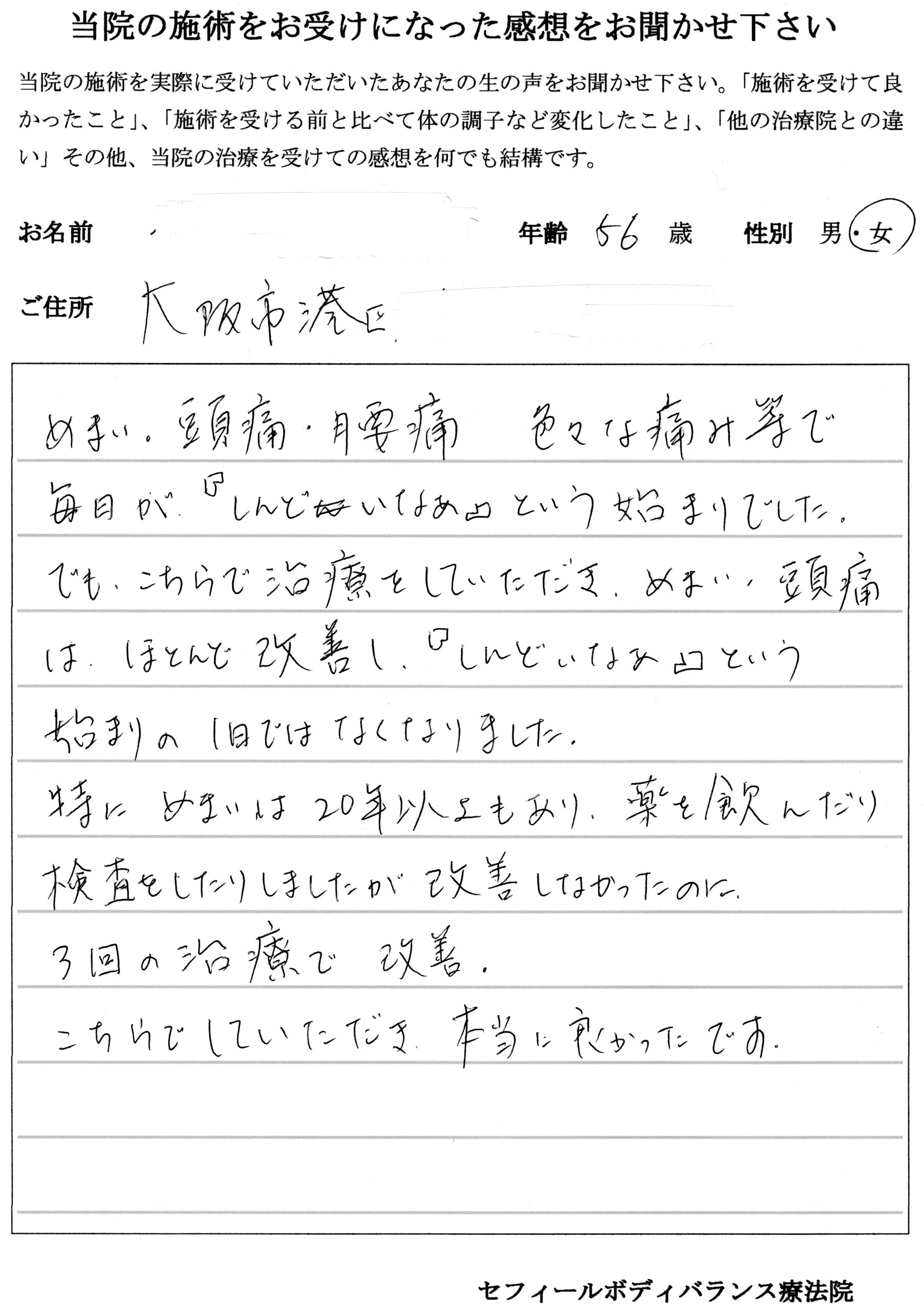 大阪市港区 56歳 女性(3回)