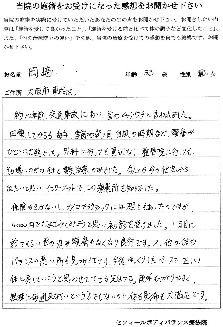大阪市東成区 岡崎 様 33歳 男性(1回)